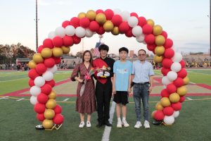 Prior to the game, seniors from the football team, cheerleading squad, and marching band were escorted to the field, with the commentator announcing their names and plans after graduation. The front of the field was also decorated with cutouts of all the seniors.